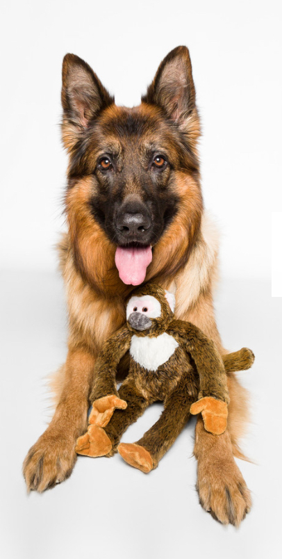 Fluff And Tuff Albert Monkey plush dog toy is fun to hang around with!
