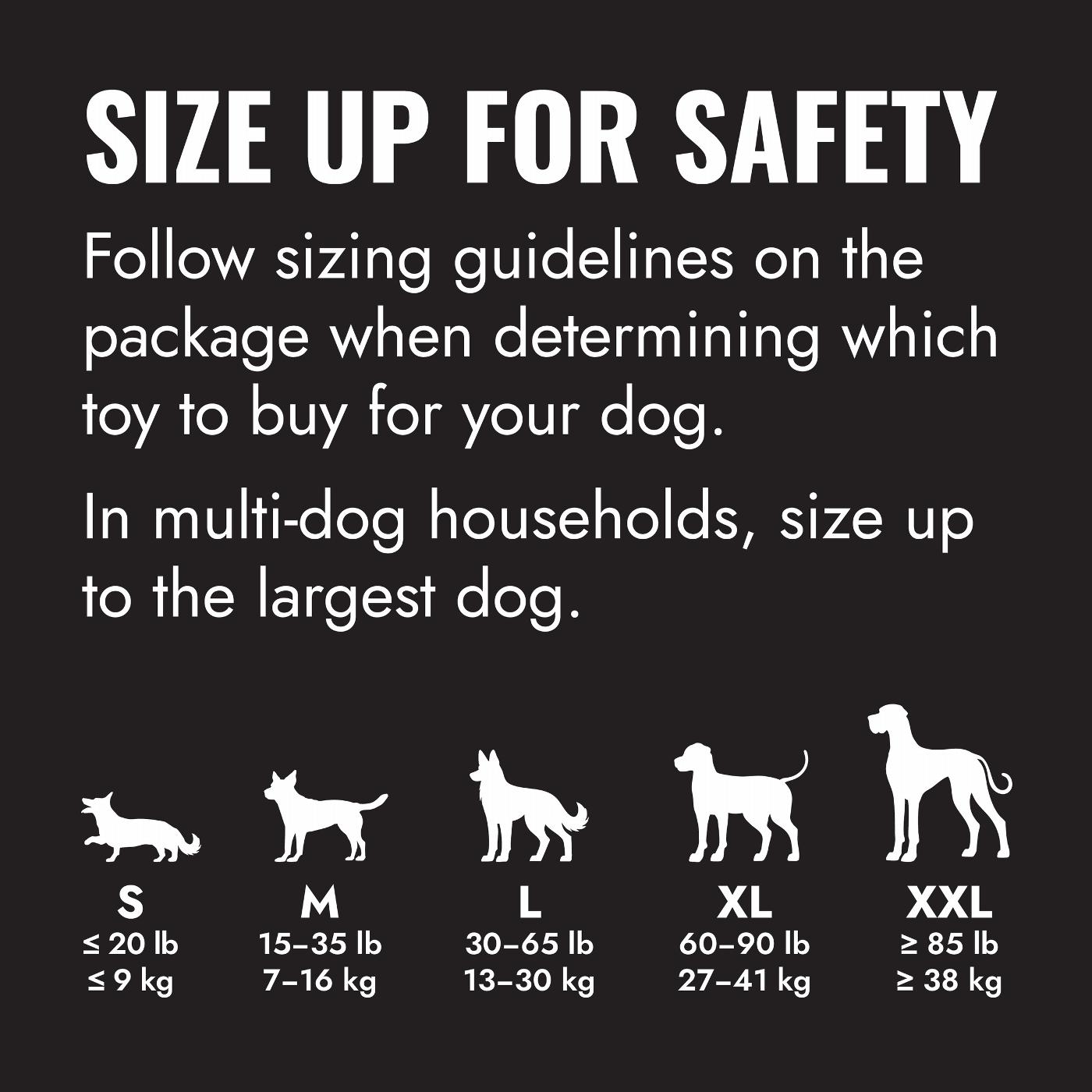 The KONG Extreme dog toy represents the most durable strength of KONG rubber. Designed for the toughest of chewers, the KONG Extreme offers enrichment and helps satisfy dogs’ instinctual needs. The KONG unique, ultra-durable, natural rubber formula is designed for determined chewers, while the erratic bounce fulfills a dog’s need to play. Want to extend play time? Be sure to stuff with tempting bits of kibble and entice with a dash of peanut butter. Add to the fun by adding KONG Snacks and top with KONG Easy Treat. Stuff and Freeze for a longer-lasting challenge.