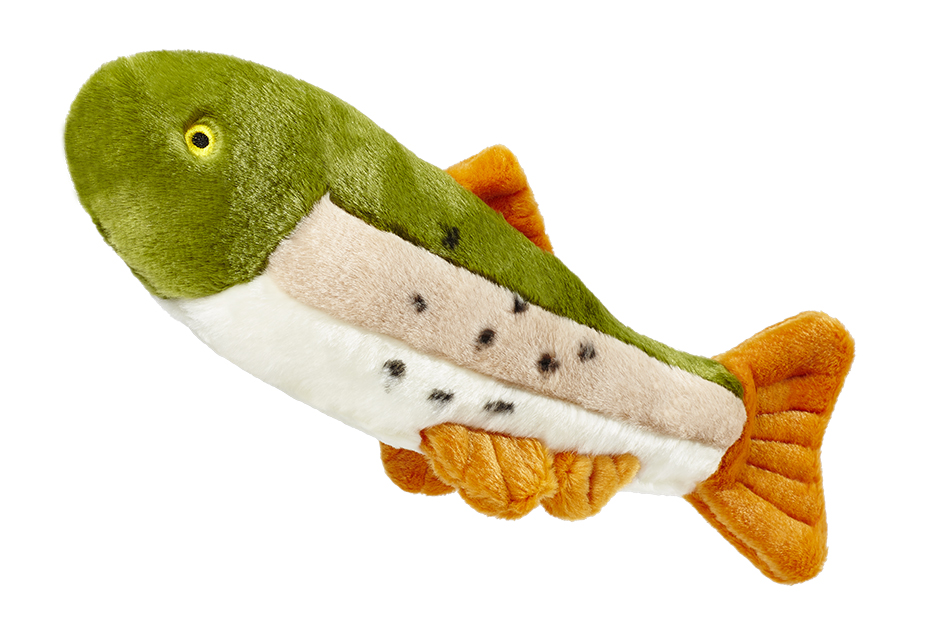 Fluff And Tuff Ruby Rainbow Trout Dog Toy with a super squeak!